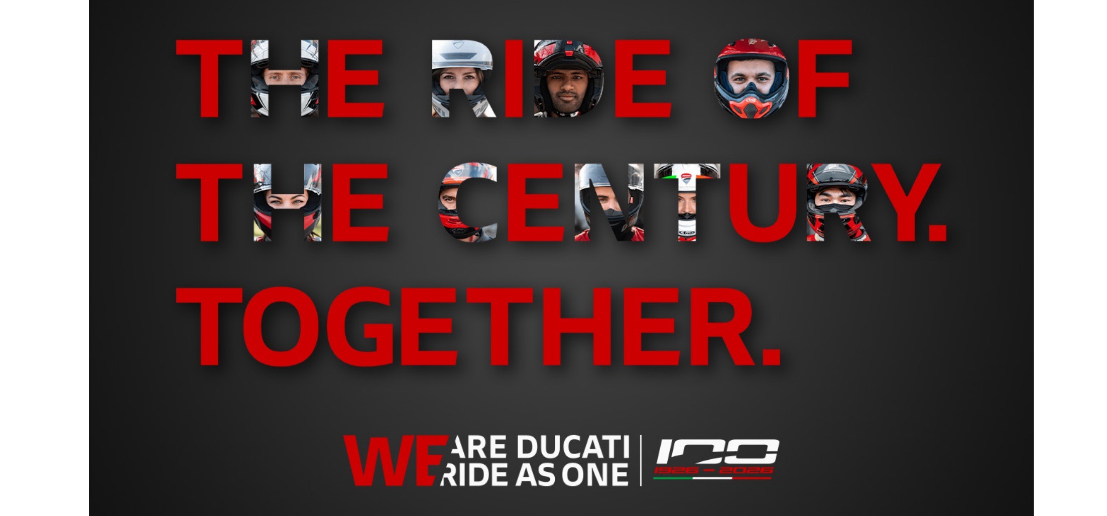 An embrace that takes on an even more special meaning in 2026, as it falls within Ducati's Centenary year. #WeRideAsOne thus becomes the first shared moment of celebration, paving the way for World Ducati Week, the big Ducati gathering scheduled from 3 to 5 July, which will bring together enthusiasts from all over the world in Misano with all the energy of Ducati's 100-year history.